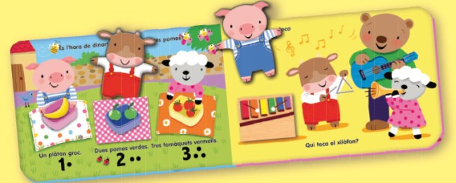L'infant s'ho passarà d'allò més bé acompanyant el vedell, el porquet i el xai a l'escola. Pel camí, haurà de triar l'animal adequat i posar-lo dins la butxaca corresponent mentre aprèn a identificar formes i colors i a relacionar conceptes. Les divertides il·lustracions i la interactivitat de la història faran que els nens gaudeixin mentre aprenen amb "Anem a l'escola". Per a nens a partir d'un any.