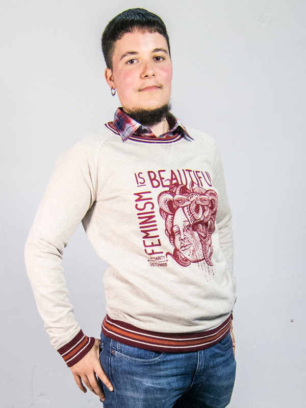 Feminism is Beautiful és un disseny d'Alhama Molina pensat des de l’apoderament dels moviments feministes. Amb el mite de Medusa (La Gorgona) com a icona, els seus mites han contribuït a la construcció d'un imaginari col·lectiu plagat d'estereotips i prejudicis, perpetuant la submissió i fomentant la por al poder i autonomia de les dones. La concepció de la dona com un ésser perillós, amenaçant, de bellesa fatal i culpable, és una constant en la simbologia universal: Kali, l'Esfinx, Eva, Pandora, Circe, Helena, Dalila o Salomé són exemples dels mals encarnats en la dona. La propaganda masclista, utilitza aquests símbols per desqualificar i dimonificar als que els qüestionen i combaten.