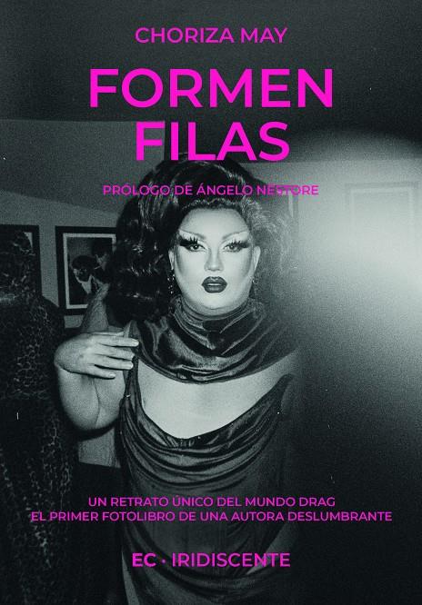 ?Formen filas? ofrece una visión íntima y cautivadora de la vida de Choriza May, una figura icónica en el mundo del drag internacional. Mediante una cuidada selección de fotografías tomadas en el backstage donde las artistas se preparan para darlo todo, este libro va más allá de las brillantes luces y los llamativos vestuarios que sirven de emblema a lo drag para mostrarnos lo que sucede entre bastidores. Desde la prisa y la anticipación inherentes a un espectáculo de DragRace a los momentos de quietud y espera, estas imágenes revelan tanto la vulnerabilidad como el coraje necesarios para asumir uno de los roles más desafiantes y subversivos de la sociedad del espectáculo.