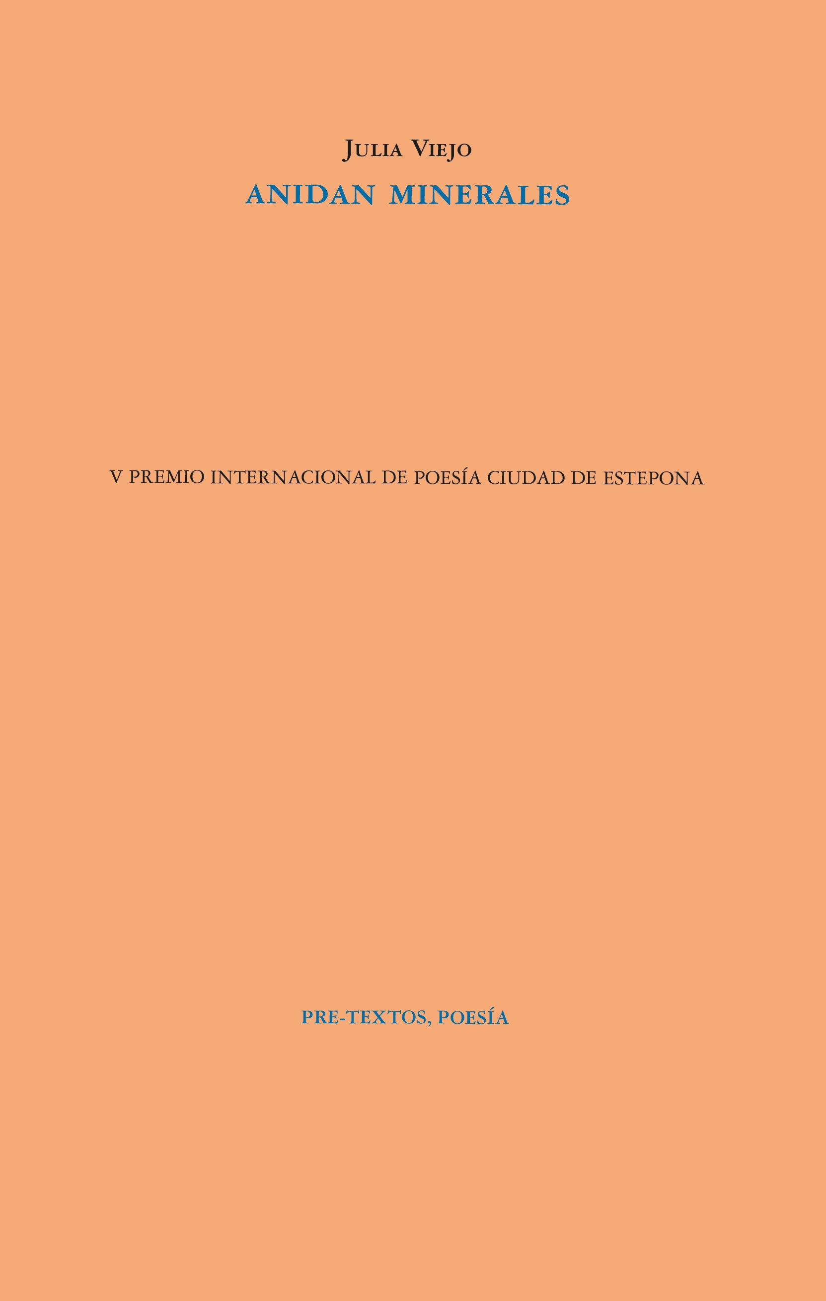 Anidan minerales es un libro que inventa escenarios grandes donde ocurren cosas pequeñas. Un canto a la gracia de lo efímero frente a la perpetuidad. Un juego de tiempos, secretos y cristales:Antes decía: la chica esto y lo otro / el cuento tiene que ser / redondo / la piel muda / y siempre era vera...