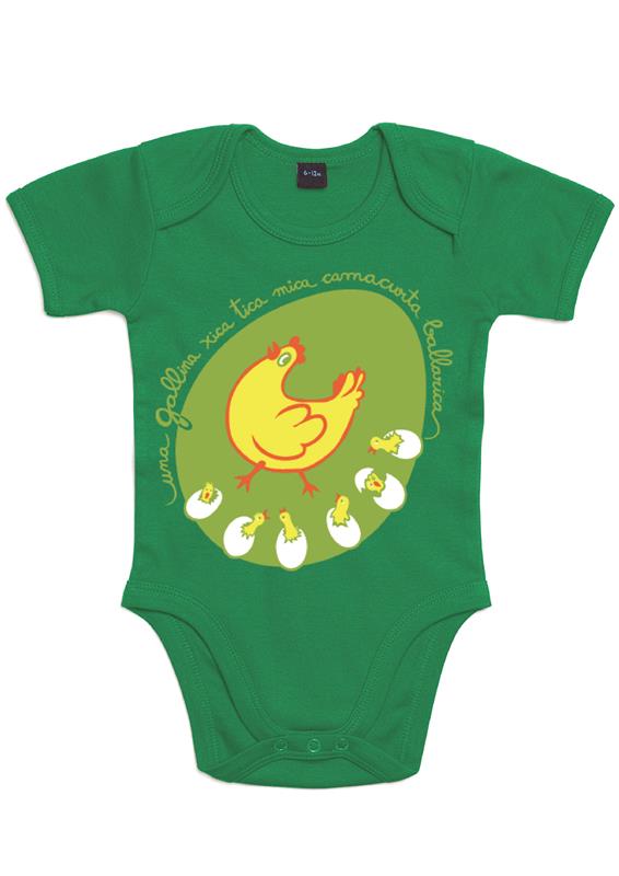 “La gallina xica, tica, mica, camacurta i ballarica” que “va tenir sis fills xics, tics, mics, camacurts i ballarics” és una de les samarreta infantils clàssiques de la nostra col·lecció Somiatruïtes.