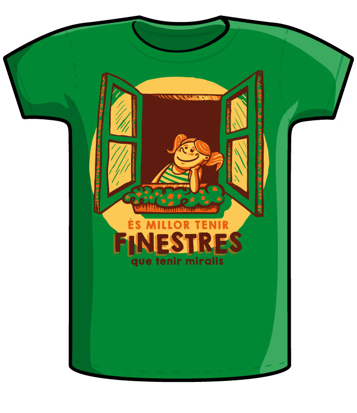 Vivim un món on el black mirror és present a totes les esferes de la vida. On cada cop ens enmirallem més amb allò que reflecteixen els nous dispositius mòbils. Moltes ens preguntem què passarà amb les criatures que hi conviuen des del minut zero. Depèn de nosaltres obrir les finestres d'un altre món més connectat amb l'entorn. Un món verd esperança com aquesta samarreta.