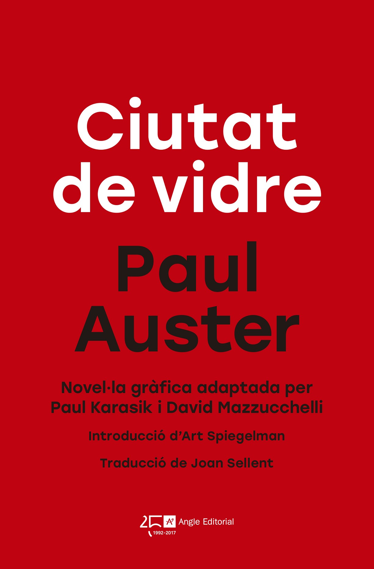 Quinn es guanya la vida escrivint novel·les policíaques i, després de les morts de la seva dona i el seu fill, viu una existència solitària enmig del bullici de la gran ciutat. Trobarà un al·licient inesperat en la seva vida quan un individu el truca insistentment a mitja nit, confonent-lo amb un detectiu anomenat Paul Auster. Quinn decidirà suplantar l'enigmàtic detectiu i acceptar el cas: l'individu li demanarà protecció davant del seu pare, un home amb un passat i un present ben foscos. Ciutat de vidre és la primera novel·la de Trilogia de Nova York, que va situar Auster com un dels narradors més destacats d'Estats Units i el va projectar internacionalment. La seva translació al format de novel·la gràfica va superar totes les expectatives possibles i va convertir-se instantàniament en un llibre de culte que, passats els anys, manté el seu fulgor, la seva fascinació hipnòtica. «Un dels cent millors còmics de la història.» -Publishers Weekly «Possiblement no siguem capaços d'expressar els elogis que es mereix l'adaptació que David Mazzucchelli i Paul Karasik han fet de Ciutat de vidre.» -Amazon.com «L'adaptació gràfica de la novel·la de misteri existencialista d'Auster, ara amb una introducció d'Art Spiegelman, ha estat un clàssic de culte durant anys. Sorprenentment, fa més profunda la foscor i la força de l'original.» -Publishers Weekly