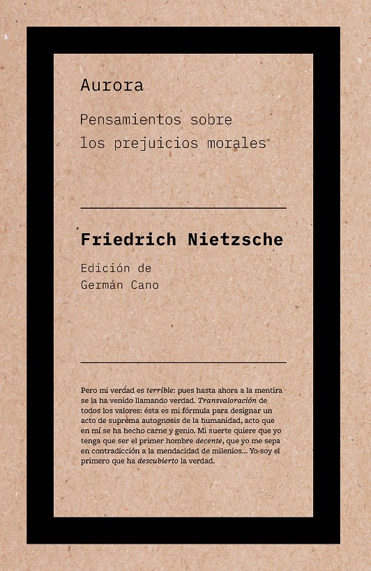 Compuesta en su gran mayoría por aforismos, con “Aurora'' (1881) Nietzsche afianza su filosofía del martillo en la madurez. En palabras del autor: «Con este libro comienza mi campaña contra la moral [...] ¿Dónde busca su autor aquella nueva mañana, aquel delicado arrebol no descubierto aún, con el que de nuevo un día –¡ay, toda una serie, un mundo entero de nuevos días!– comienza? En una transvaloración de todos los valores, en el desvincularse de todos los valores morales, en un decir sí y en una confianza en todo lo que hasta hoy se ha venido prohibiendo, despreciando, maldiciendo...».