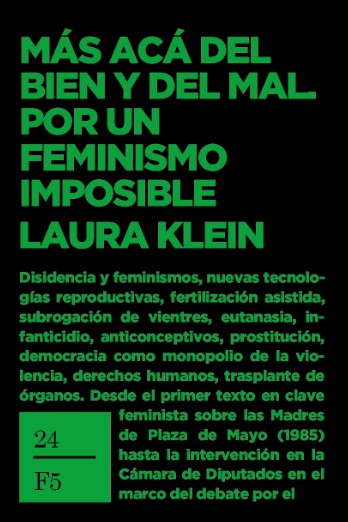 Disidencia y feminismos, nuevas tecnologías reproductivas, fertilización asistida, subrogación de vientres, eutanasia, infanticidio, anticonceptivos, prostitución, democracia como monopolio de la violencia, derechos humanos, trasplante de órganos. Desde el primer texto en clave feminista sobre las Madres de Plaza de Mayo (1985) hasta la intervención en la Cámara de Diputados en el marco del debate por el aborto (2018), un vertiginoso itinerario recorre estos ensayos escritos desde un más acá del bien y del mal. Lugar que Laura Klein funda desde un humilde paso atrás, dado para escuchar lo inarticulado de la vivencia y descubrir, con estupor o sorna, que lo bueno y lo malo no ingresan de inmediato en lo inédito de la experiencia. Desde ese más acá surge una visión del feminismo como potencia capaz de subvertir los juicios sobre la vida cotidiana y se actualiza una invitación persistente: asumir los viejos desafíos desde nuevas y masivas desobediencias.