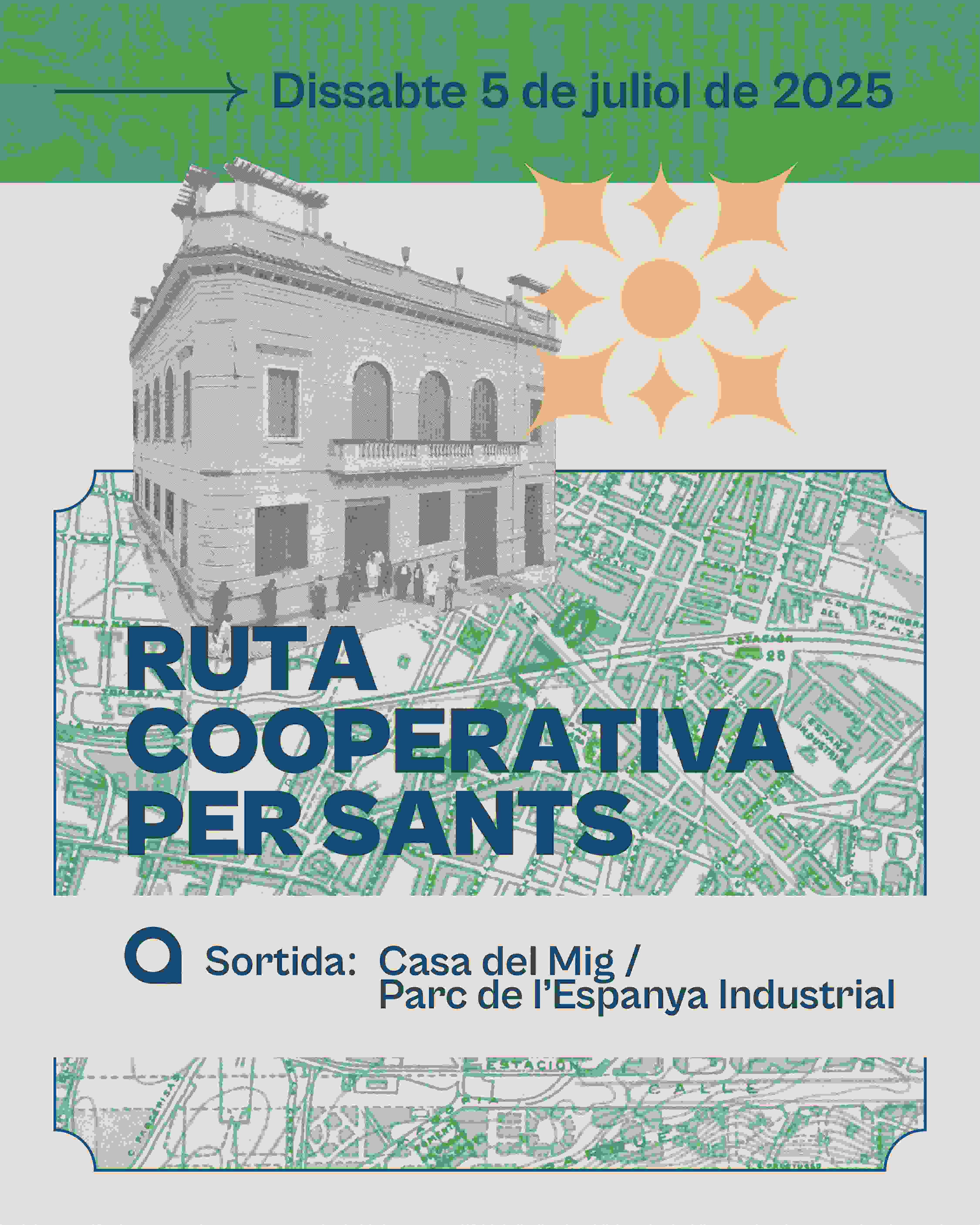 Visitarem els antics edificis cooperatius que encara avui romanen dempeus, narrarem les seves històries, les característiques, els usos actuals i els personatges que les animaren, com ara Micaela Chalmeta. La ruta començarà a les 11h (punt de trobada: Casa del Mig/Parc de l'Espanya Industrial) i veurem: