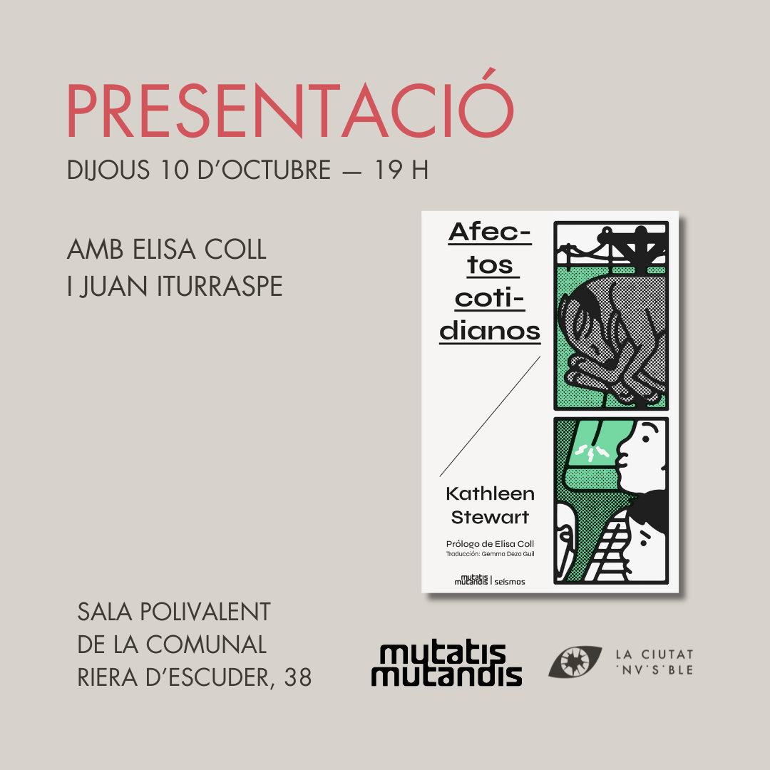 A través d'una sèrie de vinyetes breus que combinen narració, detalls etnogràfics i anàlisi crítica, l'antropòloga Kathleen Stewart, reconeguda pel seu enfocament en la política del llenguatge i el paisatge, ens convida a posar el focus en la dimensió afectiva que habita allò quotidià per descobrir el seu potencial transformador.