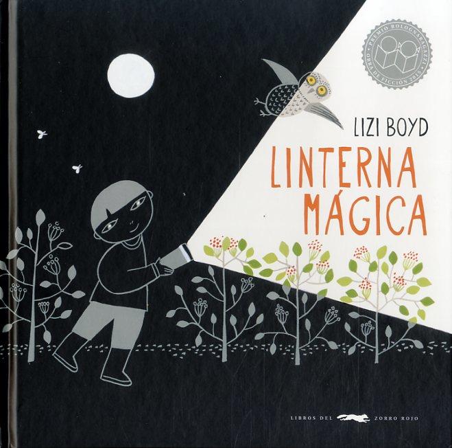 Linterna mágica es una aventura sin palabras en la que, sobre un fondo negro pintado con gouache, Lizi Boyd delinea el contorno del niño y los animales del bosque en un tenue color grisáceo. Una obra en la que el uso del contraste y del color, que emerge en el haz de luz, nos revela toda la riqueza poética de la naturaleza.