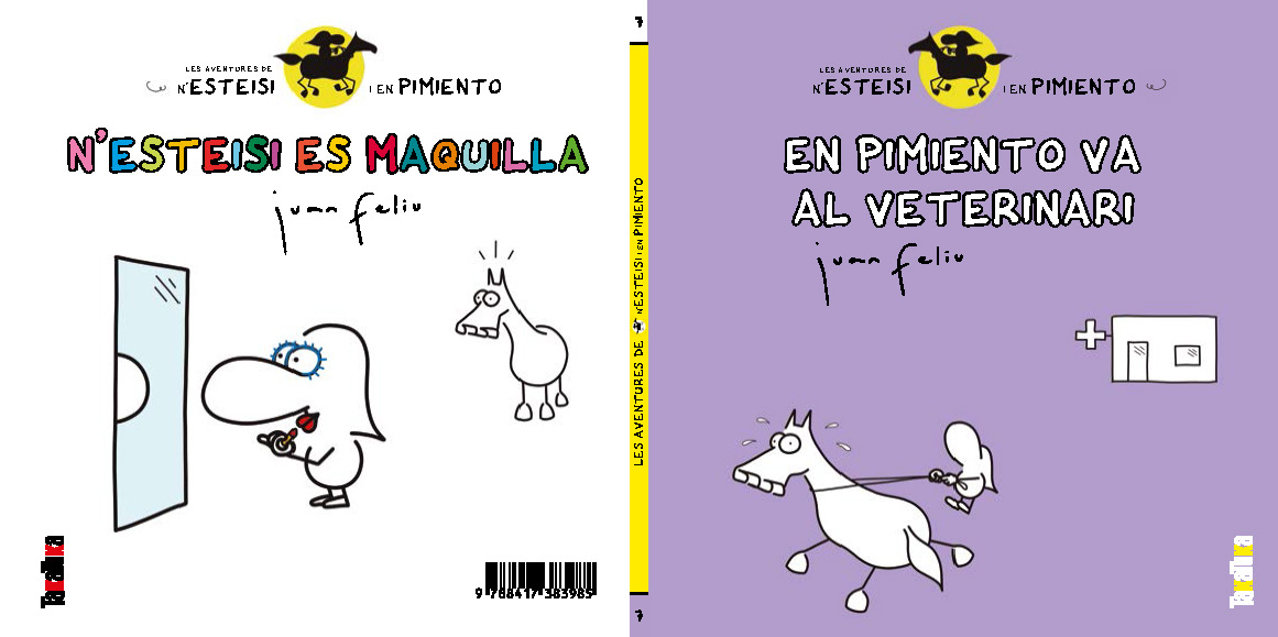 En Pimiento va al veterinari. A en Pimiento li toca revisió, però anar al veterinari li fa una por espantosa. Tot va bé fins que la veterinària li diu que li ha de treure una miqueta de sang per a l?anàlisi anual. N?Esteisi es maquilla. N?Esteisi es vol posar morena per estar guapa. Com que vol anar de pressa no utilitza protecció solar, però acaba amb el nas ben vermell. A Cals Xinos hi trobarà el kit de maquillatge que li permetrà recuperar la bellesa perduda. TEMES: veterinaris, fòbies, bronzejat, bellesa. EDAT RECOMANADA: A partir de 5 anys Les aventures de n?Esteisi i Pimiento resulten tan divertides perquè reflecteixen amb altes dosis d?humor les petites grans tragèdies i els grans moments de felicitat dels quals es nodreix el dia a dia dels nostres menuts, instants que depenen de si se senten tractats injustament o han aconseguit el que volien. Amb l?ajut d?en Pimiento i del seu enginy, n?Esteisi ha d?enfrontar-se a les burles de les seves germanes i de les nenes dolentes de la classe. Escrites amb lletra de pal, aquests relats són molt adients perquè els més petits s?iniciïn en la lectura