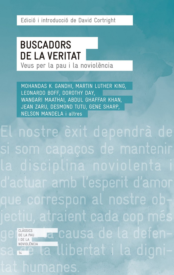 Amb Buscadors de la veritat, David Cortright ha elaborat una antologia definitiva sobre els personatges i els moviments socials més influents a favor de la pau i la noviolència. Des de Gandhi, el gran pioner, i Martin Luther King, fins al despertar d'Àfrica (amb Mandela i Tutu) i el laberint d'Orient Mitjà, passant per múltiples campanyes pacifistes, la lluita pels drets civils, la influència de les religions o la veu de les dones. «Els textos d'aquest volum tracten dels dilemes que comporta buscar la veritat i derrotar la injustícia i l'opressió. [...] Els autors són de tots els continents i treuen conclusions d'una gran varietat d'experiències històriques i moviments pel canvi: la lluita per la llibertat a l'Índia, la defensa dels drets civils als Estats Units, les campanyes contra l'apartheid a Sud-àfrica, els drets humans a l'Amèrica Llatina, i el moviment per l'alliberament de Palestina. Els textos tracten la teoria i la pràctica de la noviolència, els mètodes i l'estratègia de l'acció social, i les arrels religioses de la noviolència en el judaisme, el cristianisme i l'islam.» (David Cortright, al pròleg) Martin Luther King Jr. va dir «la resistència noviolenta és l'arma més potent de què disposen els oprimits en la lluita per la llibertat.»