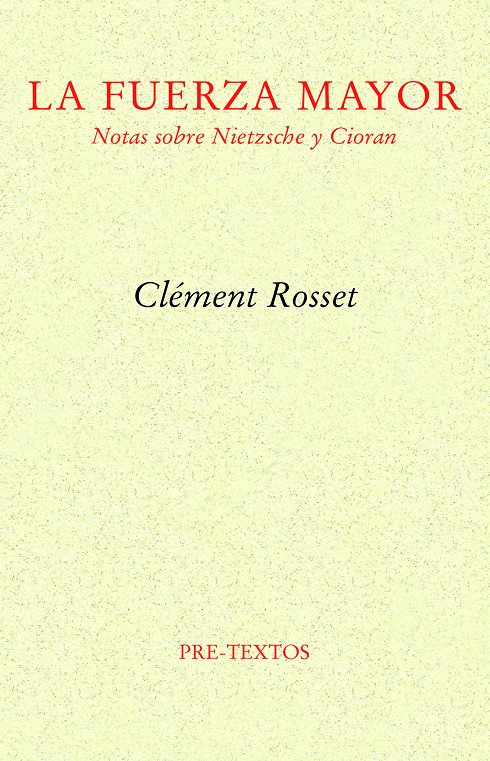 La presente obra es, sin duda, un buen exponente de la producción filosófica de Rosset. El concienzudo análisis de esa fuerza mayor que es la alegría, punto neurálgico de toda su filosofía, y su incidencia –presente o ausente– en el que quizá sea el máximo antagonismo filosófico al que puede llegarse a este respecto. Si «Notas sobre Nietzsche», uno de los estudios más lúcidos sobre la filosofía del discípulo de Dionisio y, sin duda, el más nietzscheano de todos ellos, ilustra un modo particular de concebir la filosofía, consagrada a destacar el elemento de la afirmación, «El descontento de Cioran» muestra a la perfección el caso contrario, a saber, el inconveniente de haber nacido, la teórica imposibilidad de aclimatarse a la irremediable y fatal aspereza de lo real.