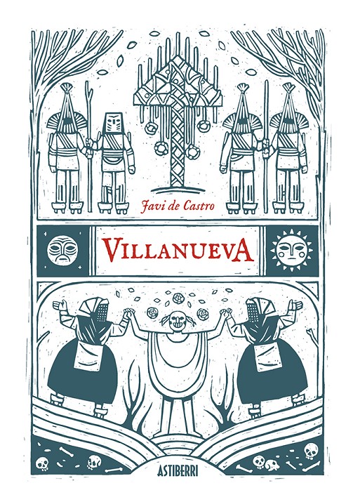2022 Nominada al premio a la mejor obra de autor nacional en los Premios Cómic Barcelona Miguel y Ana son jóvenes, tienen deudas y esperan un bebé. Un pequeño pueblo que ofrece alojamientos gratuitos parece su salvación. El folclore leonés y el terror se cruzan en esta historia de supervivencia ambientada en la España vaciada. Javi de Castro ha recogido los elementos canónicos del subgénero de terror conocido como folk horror , típicos del cine británico, para llevarlos a la meseta española cediendo el protagonismo a los verdugos. En palabras de Javi de Castro, lo primero es que el género me encanta, The Wicker Man, La garra de Satán, Midsommar... pero es que además España, y más concretamente la región leonesa, a la que pertenezco, está plagada de tradiciones ancestrales: el antruejo y sus personajes, el ramo leonés, los hombres musgo de Béjar, los Mayos... Muchas cosas que se ven en aquellas películas las he visto yo desde niño, y para este cómic he querido aprovecharlas y crear mi propia mitología basada en esa realidad . Villanueva -el topónimo más común de España, con 132 localidades homónimas- es
