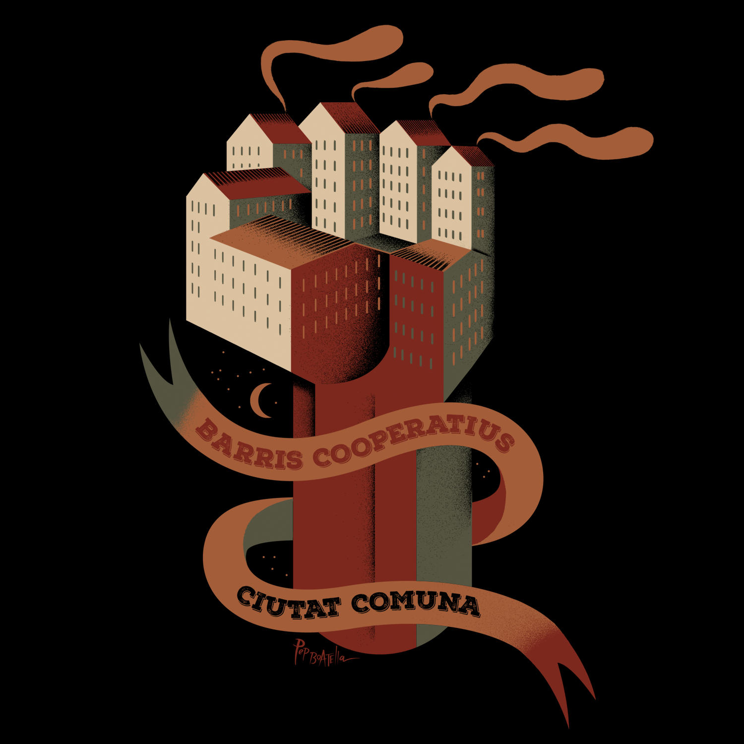 En els darrers anys de lluites, hem viscut no només intenses protestes al carrer sinó l’emergència d’espais i col·lectius que intervenen en la vida quotidiana dels territoris, que autogestionen recursos a escala local, que es constitueixen en una força material. Aquesta dimensió espaial i material de la cooperació social, va articulant a escala urbana una geografia política antagonista a partir de centres socials, ateneus, cooperatives de treball, grups de consum, equipaments autogestionats, horts i solars comunitaris, i xarxes d’intercanvi i suport mutu, que aposten per la reapropiació cooperativa dels barris i la crítica pràctica de la ciutat capitalista. Des dels barris cooperatius, cap a la ciutat comuna!