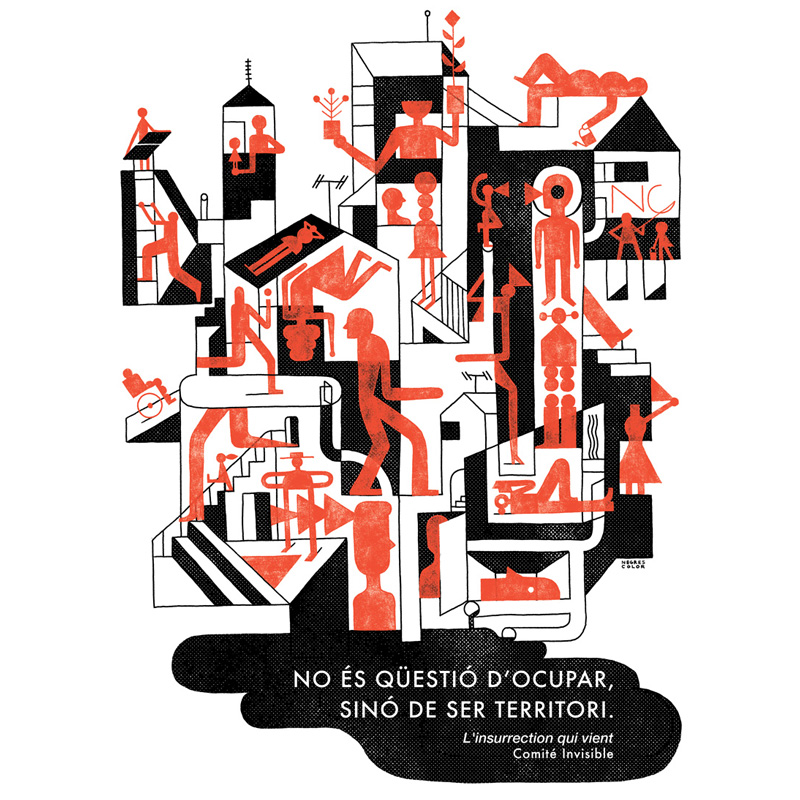 Il·lustració de Joan Negrescolor nominada com a finalista als Premis Junceda 2016 en la categoria d'edició. Originàriament va ser realitzada per a l'exposició City to City FAD Award dissenyada i produïda per la cooperativa d'arquitectes LaCol. "No és qüestió d'ocupar sinó de ser territori" és una cita extreta del llibre L'Insurrection qui vient del Comité Invisible.